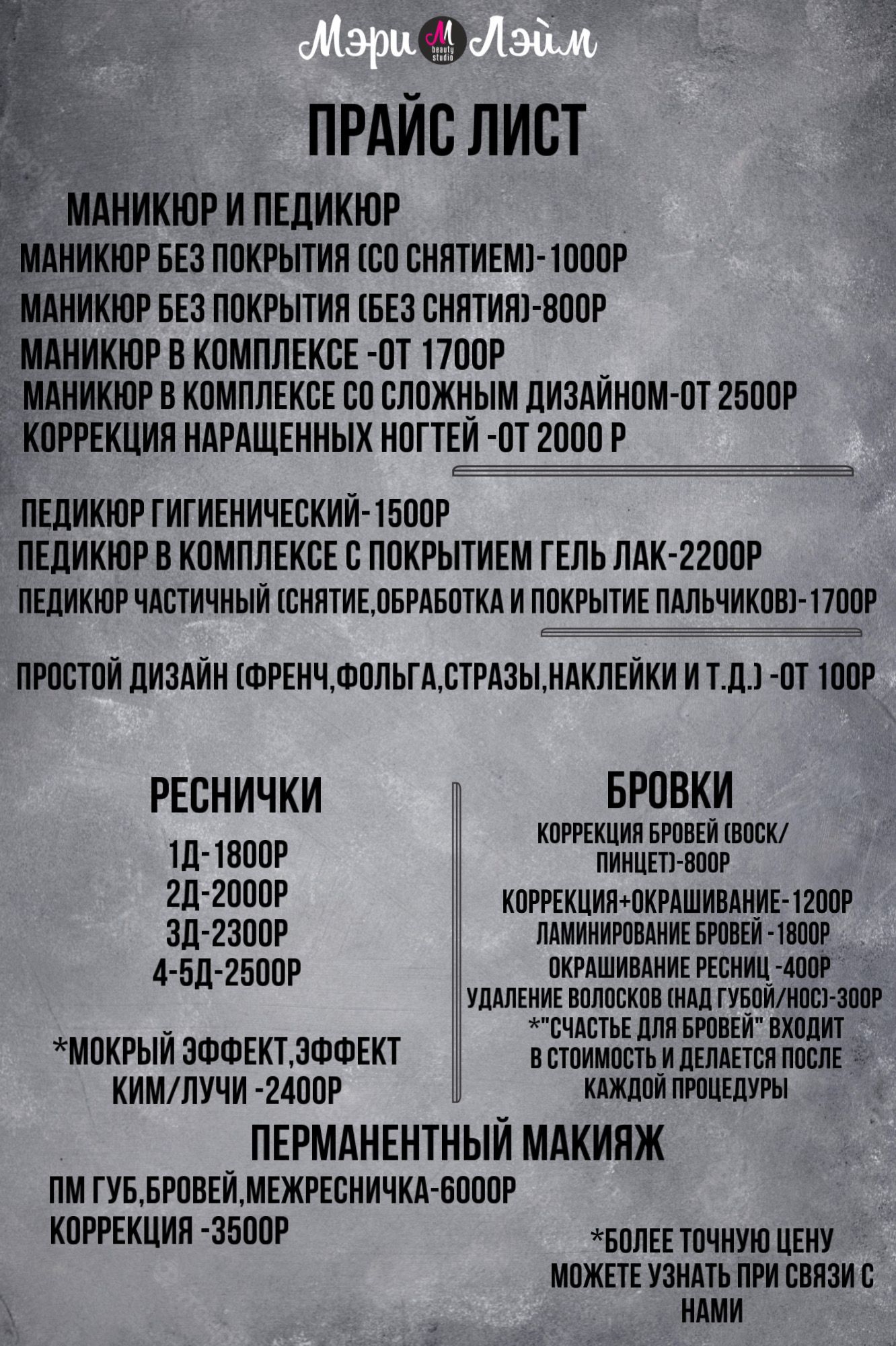 Добро пожаловать в Мэри Лэйм студио! Мы окажем Вам качественную и быструю услугу маникюра,педикюра!А так же предложим дополнительные бьюти услуги! окружим вниманием и заботой, создадим домашнюю атмосферу уюта. От нас уходят отдохнувшими и красивыми!